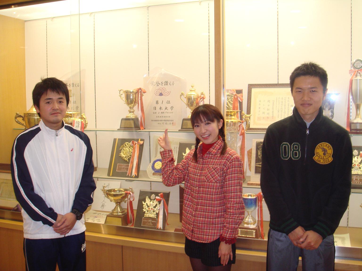 日本大学 陸上競技部の主務、野中さんも加わりました。たくさんのトロフィーが飾られていましたよ!