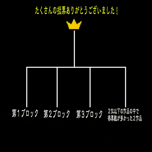 この2作品に僅かながら及ばなかった。しかし、これらの作品に投じられた 『浮動票』が、決勝戦の鍵を握る事になるかもしれない。