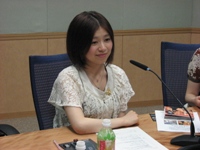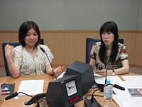 ※Anime Expo2007に出演のため渡米中の平野さん、茅原さん、後藤さんが3枚のカードになってボックスに刺さっています。誰かを1枚選んで引いて、絵柄が見事アメリカ仕様になっていた方の勝利!
