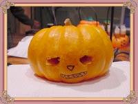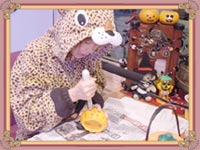-------------------- 2003年10月30日 -------------------- ハロウィーン企画。女主人の格好は誰がなんと言おうと「女豹」です。 ハロウィンぽいものを作ろうということで、ちょっとサイズは小さいけれど ジャック・オ・ランタン=カボチャのちょうちんを作りました。 皮が硬かったり肉厚だったりでなかなか力のいる作業。 カボチャを削るとあまーい匂いがスタジオに満ちたのでした。 |