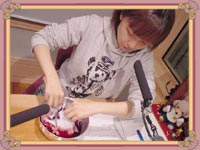 -------------------- 2004年2月12日 -------------------- 女主人のハッピーバレンタイン! ゲストの堀江由衣ちゃんといっしょに、大きなハート型のチョコに 色とりどりのミニチョコやアラザン、チョコペンでデコレート。 途中、チョコペンがうまく溶けてなくて焦ったりもしましたが かわいらしくできあがりました。真ん中のうずまきがねじまきっぽいでしょ。 放送後、みんなでおいしくいただきました。 |