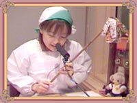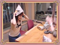 -------------------- 2002年5月2日 -------------------- 端午の節句前ということで、新聞紙で兜と剣を作りました。それを携えて、 じゃんけんクイーンの威信をかけた「叩いてかぶってジャンケンポン」に挑戦。 1回戦小山P、2回戦バンダイビジュアル轟さん、3回戦喜久子おねえちゃん。 結果は……クイーンの称号は保留したほうがいいかも? |