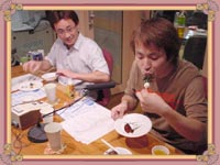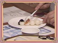 -------------------- 2004年9月23日 -------------------- ゲストの高木渉さん&大西健晴さんと一緒に、「オリジナル月見だんご」作り! |