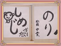 -------------------- 2002年11月7日 -------------------- 11/3文化の日、「文化放送秋の収穫祭」で行なわれた3回目の公開出店 「秋晴れにこにこ遠足」で、ゲストの浅川悠さん、松岡由貴さんも交えて 文化の日らしく、オリジナル「書」を書きました。 テーマは「にこにこ」。倉田店主は書いてウレシイもらってウレシイ「郵便」。 浅川さんは当日、会場内のイベントで買ったハムスターの名前「しめじ」 松岡さんは「にこにこと言えば……のり!」。素敵なオチをありがとう! |