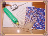 -------------------- 2004年7月29日 -------------------- 猛暑の夏を涼しく演出する、オリジナルうちわを製作。 骨にのりを塗って、お気に入りの和紙を貼ったり、無地のうちわにイラストをつけたり。 |
