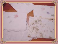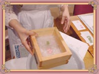 -------------------- 2003年6月5日 -------------------- 手漉きの和紙ではがきを作りました。 水に紙のもととなる、こうぞなどを溶かし 木枠に流し込んで、厚さが均一になるように揺らします。 このときに、押し花などを漉き込むと、かわいらしい花のはがきになります。 木枠からはがして、ぎゅうぎゅう押し付けて水を絞り アイロンをかけて平らにします。その後、しばらく乾かしてできあがり。 押し花のかわりに紅茶の葉を入れたのも作りましたが……微妙…… |