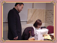 -------------------- 2002年5月9日 -------------------- この日は、5月12日の母の日に向けて「母の日スペシャル」でした。 ねじまき工房でも、お母さんにプレゼントするための和風バッグを縫いました。 またまた登場のミシンが楽しくて、はまってしまいそうな倉田店主なのでした。 |