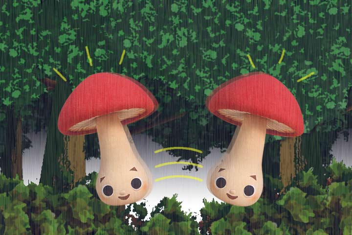 狭いほら穴に次々と雨宿りにやってくるシイタケたち。