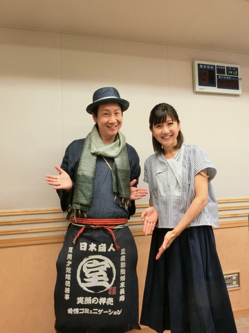 今回のゲストはオーガニックストア「麻布島崎屋」を今年9月にオープンした室岡明彦さん。作務衣姿に「笑顔の押し売り」などのユニークな文言が書かれたオリジナルの前掛けをつけてのご登場。