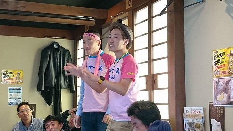 祝日の12月23日10時から12月の練習会を代々木公園で開催しました。10チームに分かれて、1周1.1キロのコースを1チーム5~6人で12周する駅伝。タイムを競うのではなく思い思いのペースで走りました。そのあとはクラブ忘年会。ランナーズの2人に盛り上げて頂きました。