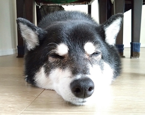 この季節、床暖房をつけるとモソモソ移動を始め、お腹をぺったりつけて寝てます。