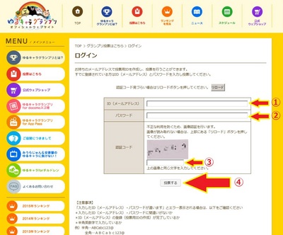 ※@vote.yurugp.jpからのメールが受信できるようにしておいて下さい。