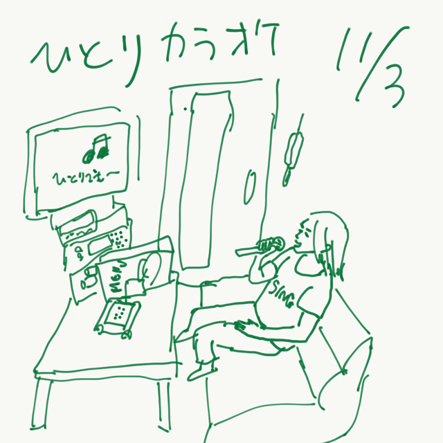 2020.11.06(金) 11月6日 リモートワークはエンドレスにならないようにしよう。 2020.11.05(木) 11月5日 アナキンさん 2020.11.04(水) 11月4日 スーパースター3人 2020.11.03(火) 11月3日 1人カラオケはまだ未体験 2020.11.02(月) 11月2日 ワンチャンありますかね?