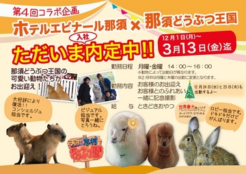 今年も、ホテルエピナール那須では、那須どうぶつ王国の協力を得て「臨時スタッフ」が入社します。