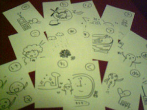 番組スタッフが作った、いかにも手作りのかるたの絵札。