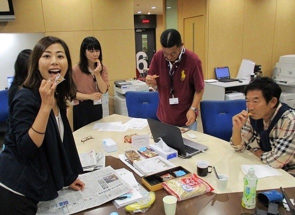 インドのお菓子で一息つくSAKIDORIメンバー。