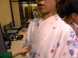 着付けは、斎木先生の前にずらっと並んで皆さんで試行錯誤。