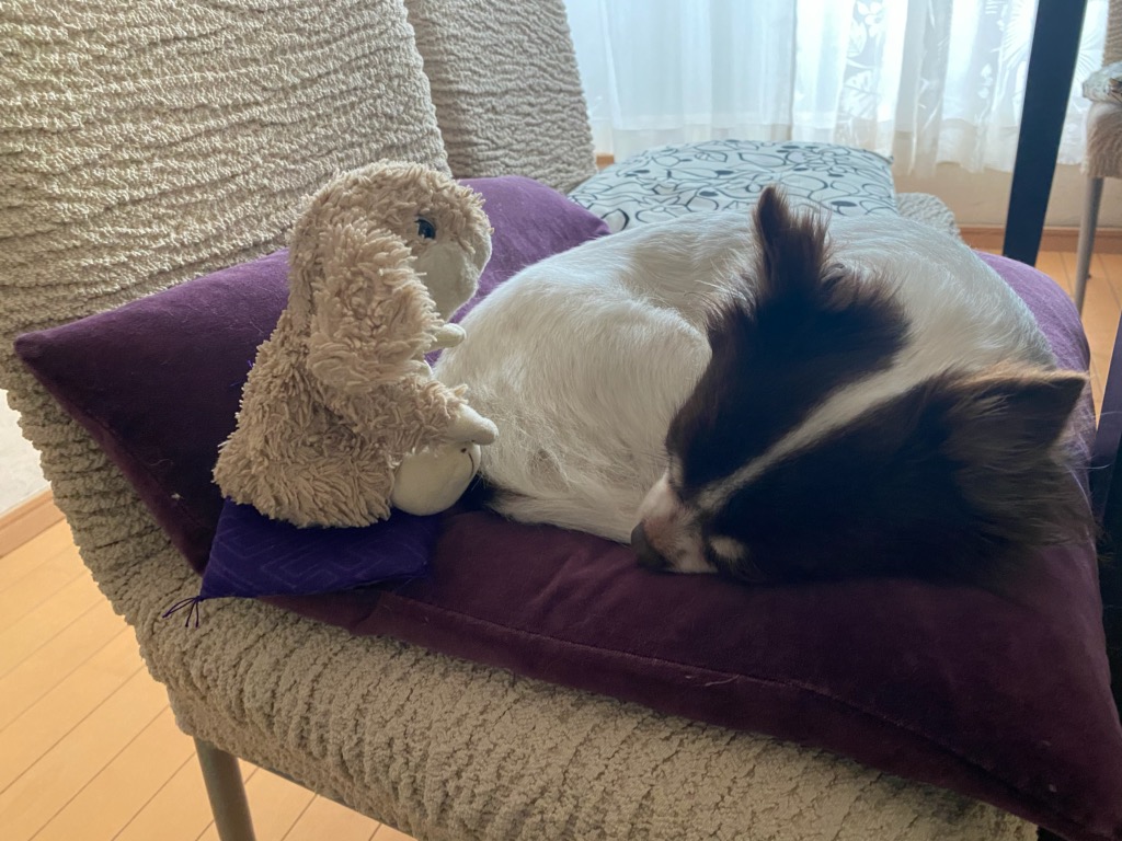 (家で犬を相手に練習するうさぎ。犬どこで寝てるんだという疑問も生まれる写真。)