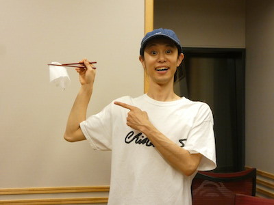 続いては『上から落ちてくるティッシュをお箸でキャッチ』!!
