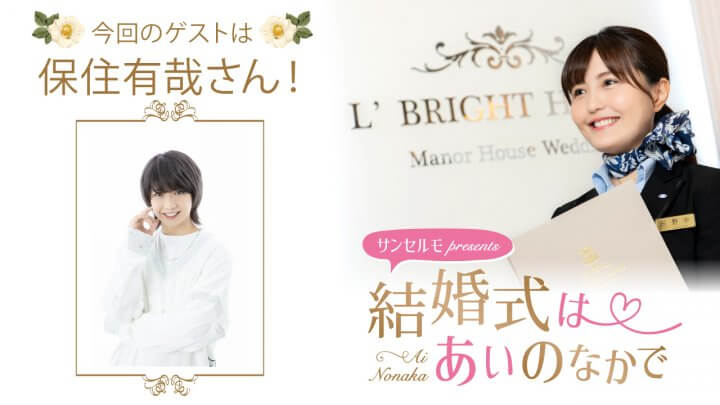 当番組は、「ブライダル」をテーマに、パーソナリティを務める声優の野中藍さんがウェディングプランナーに挑戦し、浜松町の結婚式場・エルブライトハウスからお届けしています!
