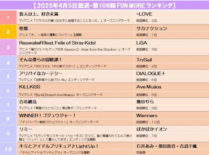 【今週のFUN MOREランキング】
