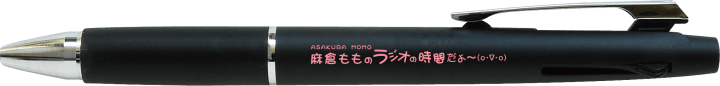 番組名の「麻倉もものラジオの時間だよ~(o・∇・o)」がワンポイントであしらわれた、3色(黒・赤・青)ボールペン。
