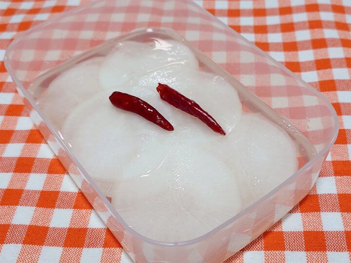 ②保存容器などに①の大根と鷹の爪を入れ