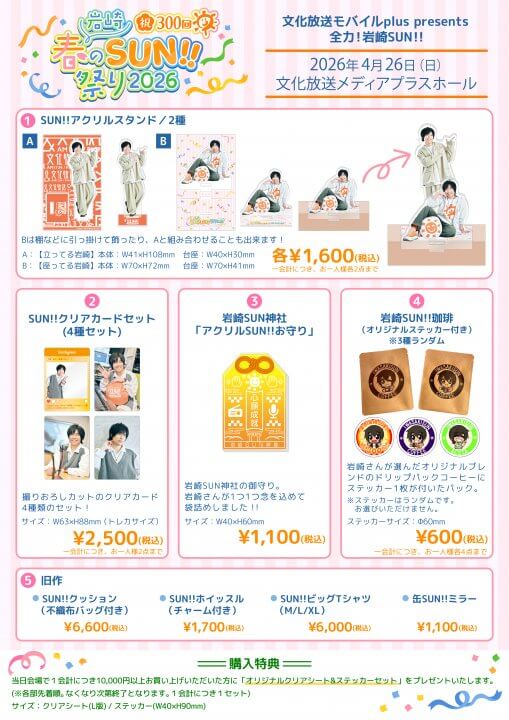 【チケット一般販売中&イベント物販情報!】4/26(日)開催『全力!岩崎SUN!!』番組イベント