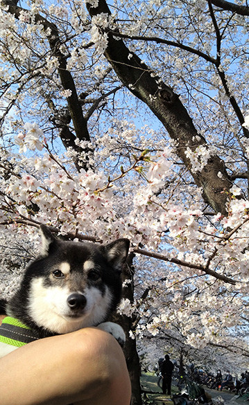 さて今回も紋次郎。「桜と無理やり記念撮影」。
