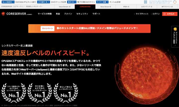 サポート体制も整っており、ライブチャットで緊急時の回答を受けることができるので、初心者でも使いやすく、信頼性と安全性も確保したレンタルサーバーサービスです。