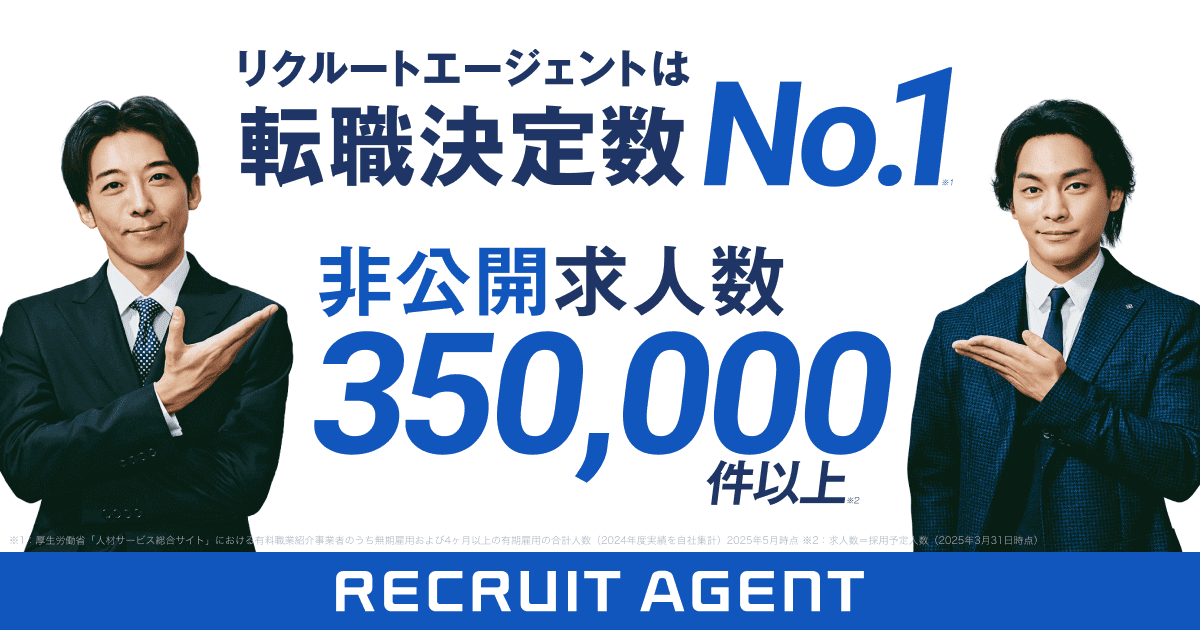 リクルートエージェントは業界最大級の求人数を揃えている転職エージェントサービスです。