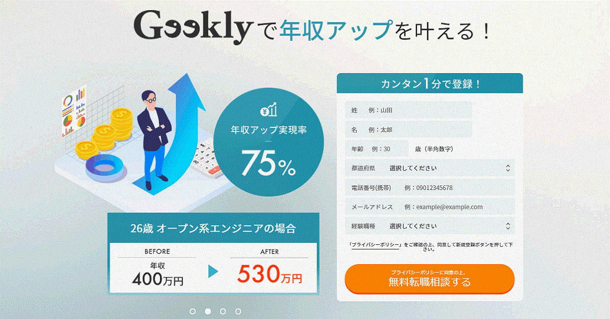 Geekly(ギークリー)は株式会社Geeklyが運営するIT・Web・ゲーム業界特化のエージェントサービス型転職サイトです。
