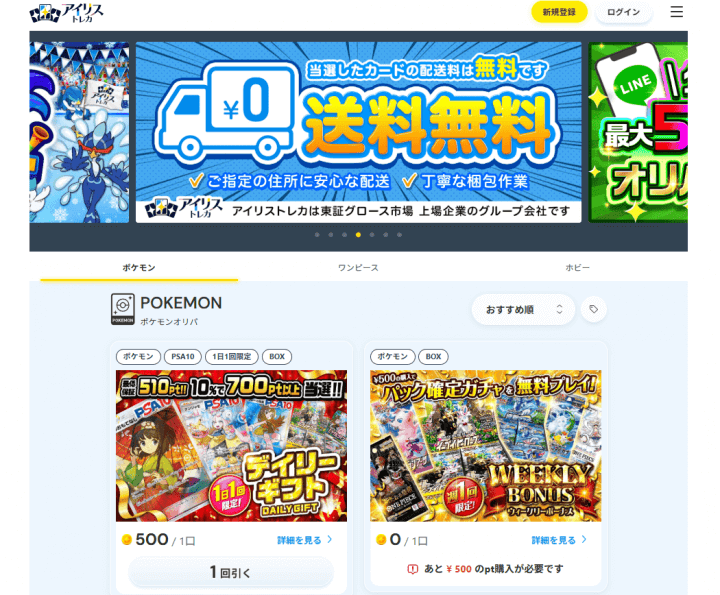日本トレカセンターは、様々なトレーディングカードゲームの特別なオリパを提供するオンラインサービスです。