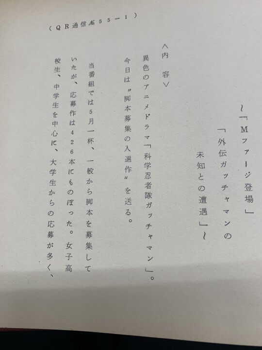 ガッチャマンに注目して資料を読み進めると、