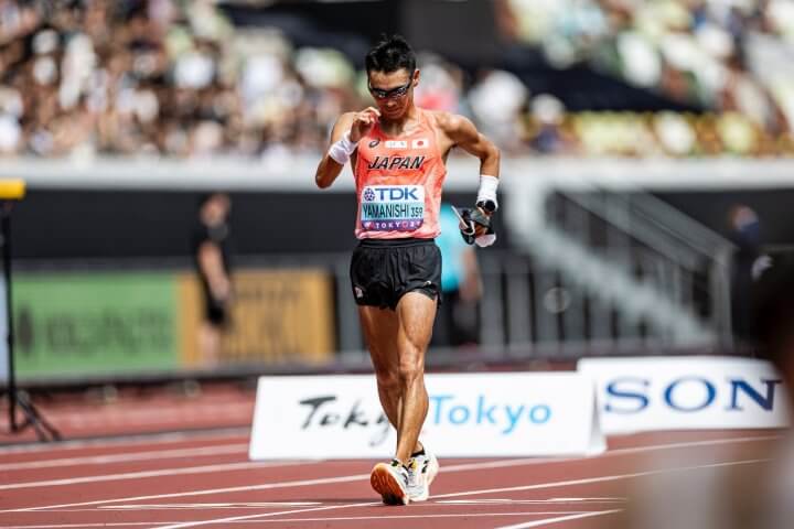 ・レース後日本競歩陣全員が山西選手の元に