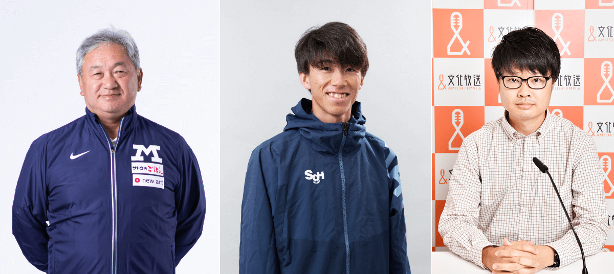 文化放送では、実況中継の解説に、明治大学競走部・大志田秀次駅伝監督、ゲストに青山学院大学OB・近藤幸太郎選手を招いてお届けします。