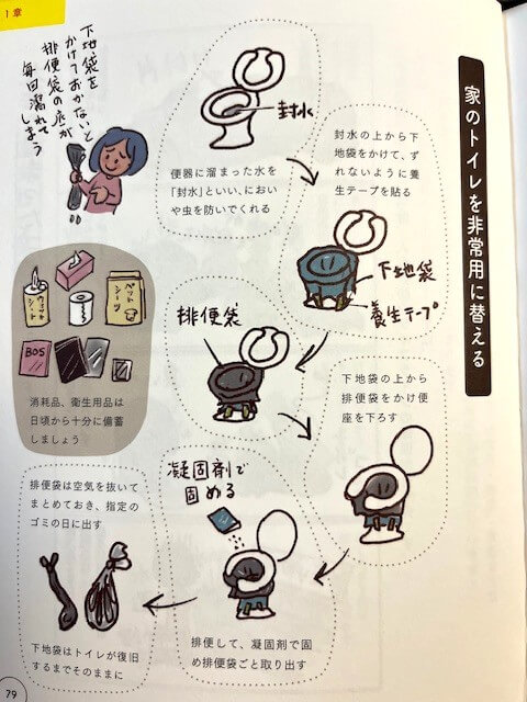 用を足したら凝固剤で固めて排便袋ごと取り出す。