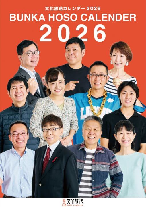 2026年版「文化放送カレンダー」は、“地元”をテーマに、文化放送の人気番組パーソナリティとアナウンサーが全国各地の名所や名産品とともに登場する特別企画です。パーソナリティ写真に加え、アナウンサーの撮り下ろし写真を、それぞれゆかりの地や特産品を紹介するデザインで構成しています。