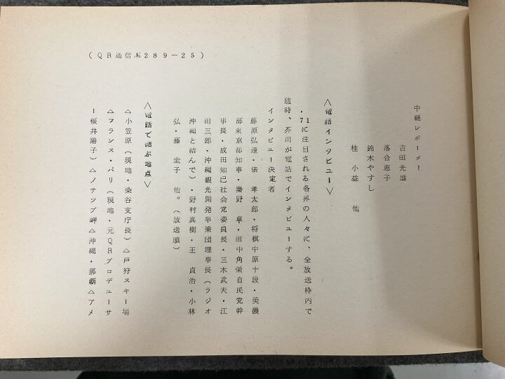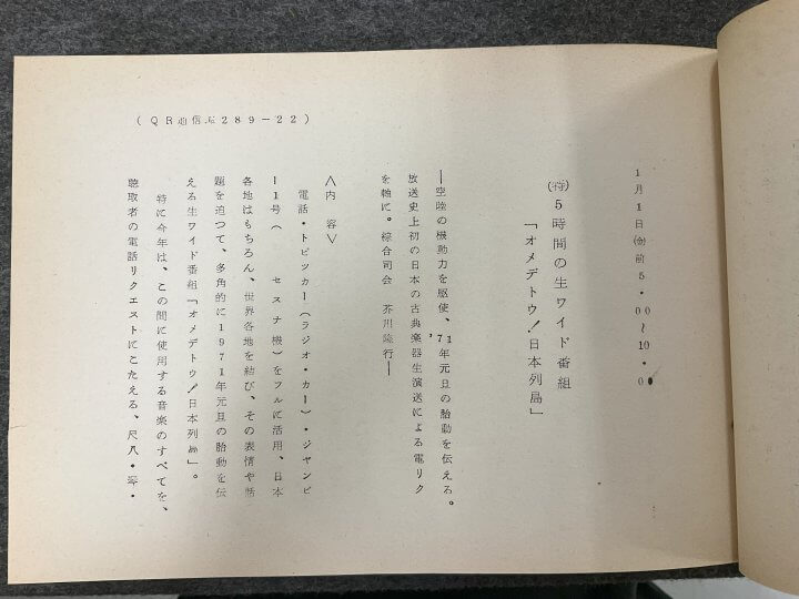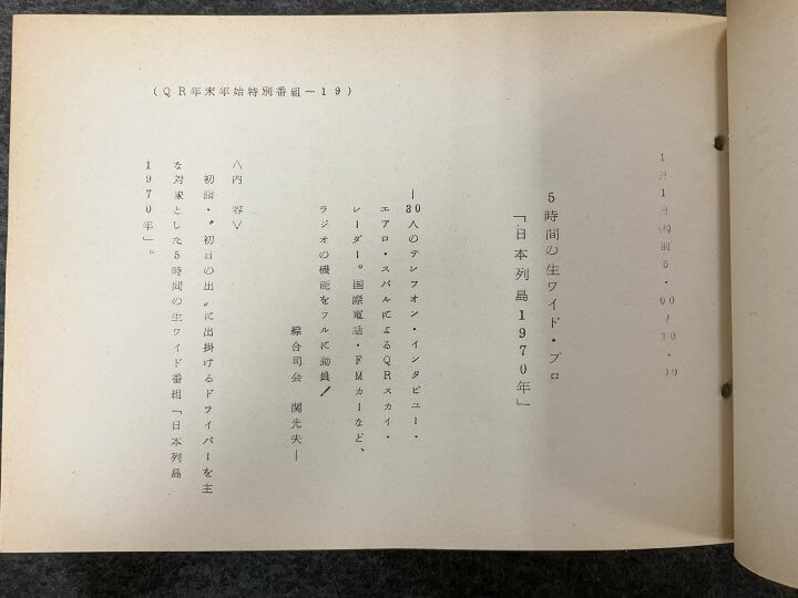 等々。ラジオの機能を集中、1970年の幕開きを生々しく伝える。」