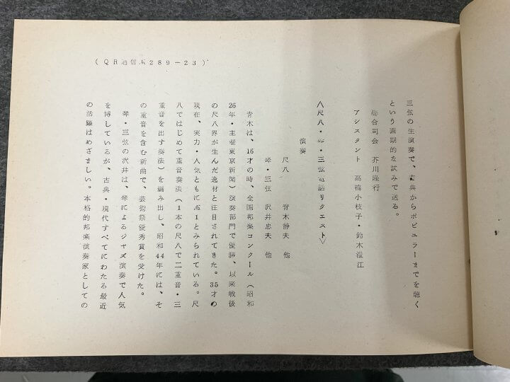 尺八・琴・三弦の生演奏で古典からポピュラーまでを聴くという画期的な試みで送る」