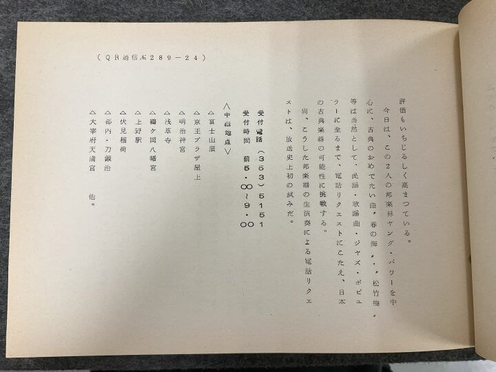 放送史上初の日本の古典楽器生演奏による電リクを軸に。」とある。