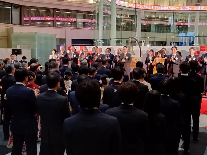 1月5日の大発会で、日本取引所グループの山道裕己CEOがあいさつし、「ことしの干支は午で、相場の格言では『午尻下がり』と言われているが、日本企業の堅調な展開が見込まれており、個人消費の回復や企業の成長投資の促進、そして政府の成長戦略によって強い経済の実現に向けて相場が尻上がりになる展開を期待している」と述べた。