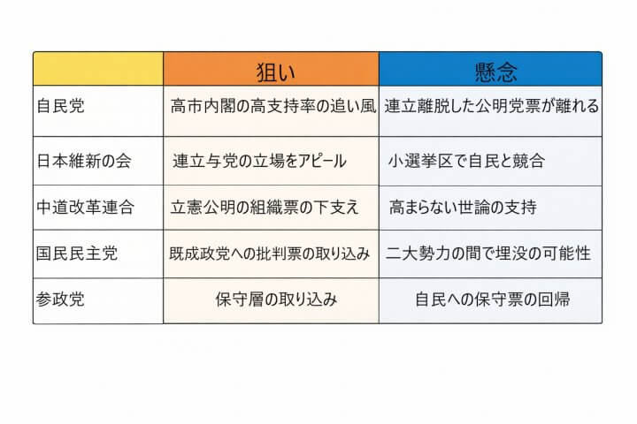 太田アナ(アシスタント)「この記事では衆議院選挙の主な政党の狙いと懸念というのが一覧になってまして、それをご紹介します」