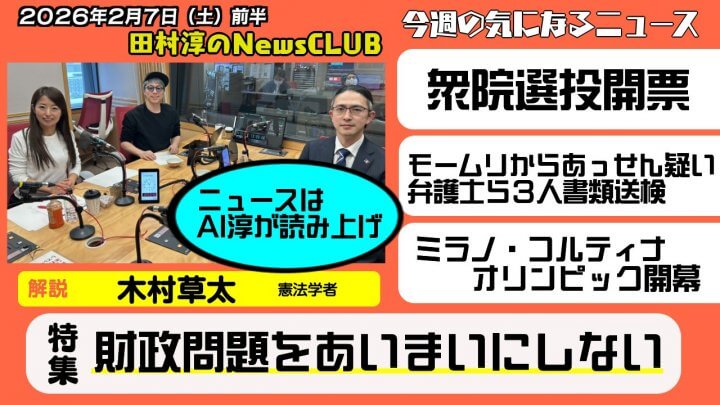 2月7日(土)ゲストは武井壮さん!ニュースは木村草太さんとお送り!「AI淳さん」のニュース読み上げも!