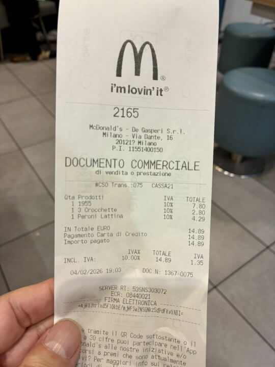 ミラノ2日目の夜、滞在していたホテルから非常に便利な場所にあるマクドナルドで夕食を摂ったのですが…