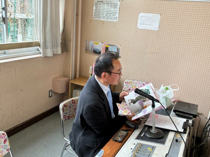 お昼の時間は放送室で本の読み聞かせをしたり、放送委員会の生徒さんのも加わってもらってワイワイ話しながらお昼の放送をお送りしました。委員会の皆さんと放送をお送りするのは初めてでしたが、いろいろな話を聞けました。給食もいただき、自分が小学生の頃を思い出しました。