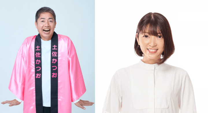 左から)土佐かつお、奥田麻衣アナウンサー