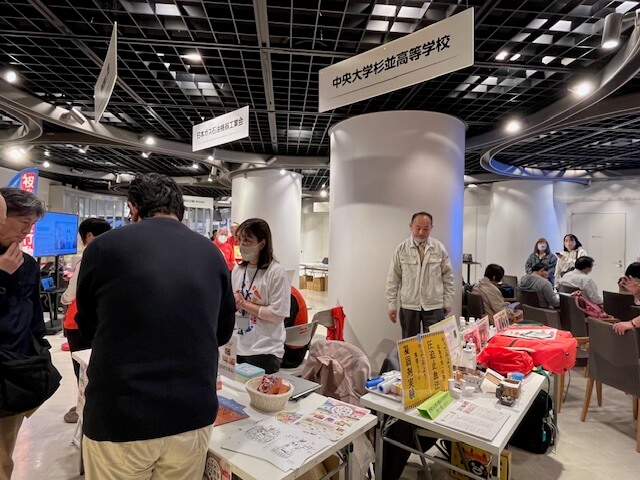 中央大学杉並高校のブースでは、防災の学校での取組を紹介していました。
