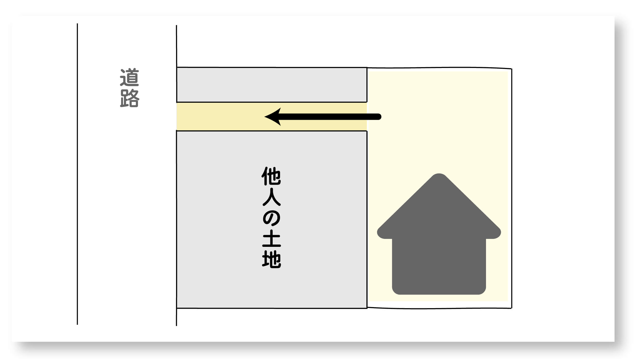 この場合、道路に面していない家を持っている人は、道路に出るための権利を、無条件で持つことができるんですね。この権利は民法に定められています。