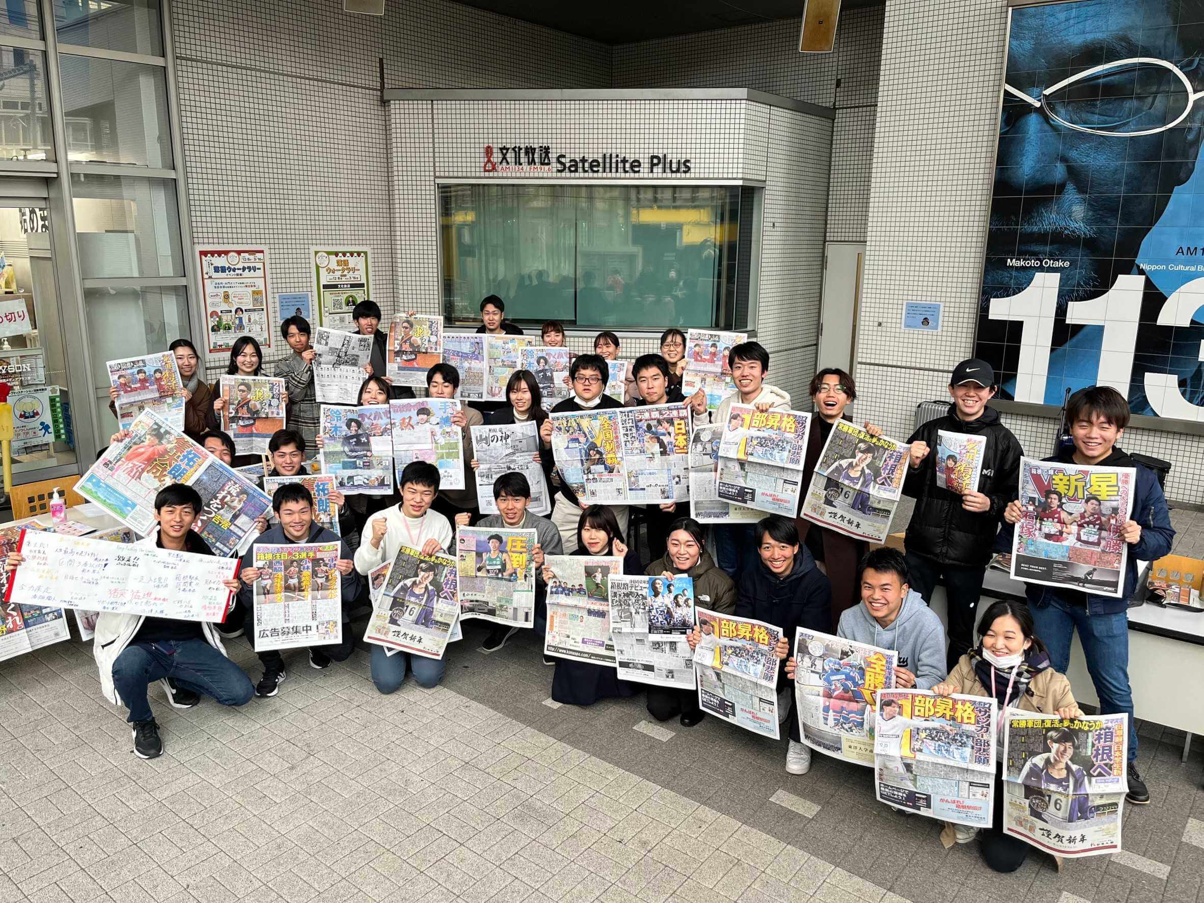 12月25日に9大学が集まり各大学がスポーツ新聞を配布しました
